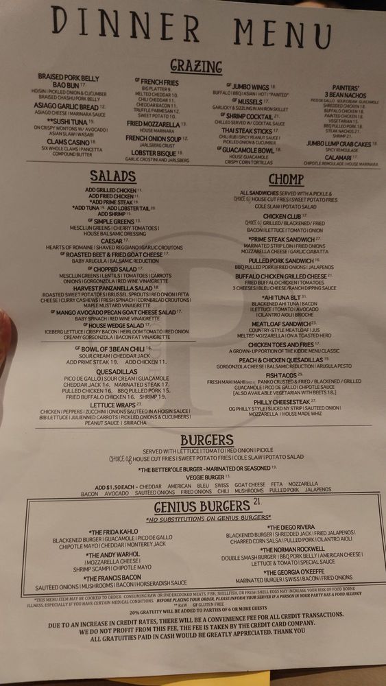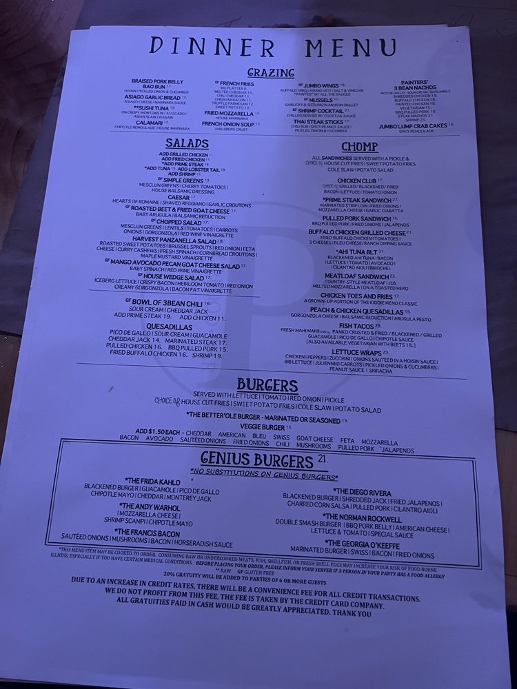 Painters’ Restaurant in Brookhaven, NY, is a versatile establishment offering a plethora of amenities such as outdoor seating, live music, and a full bar. Customers rave about the friendly service, diverse menu options, and vibrant atmosphere. The restaurant caters to various dietary preferences, with many vegetarian choices available. Reviewers praise the generous portions and delicious dishes, like the autumn frisée salad and chicken roulade. The ambiance is lively, with Halloween decorations adding to the festive spirit. Patrons can unwind on the dance floor or enjoy a relaxing meal with their loved ones. Whether it's a casual outing or a special occasion, Painters’ Restaurant promises a memorable dining experience worth revisiting.